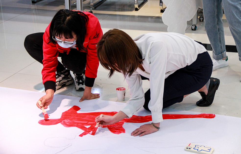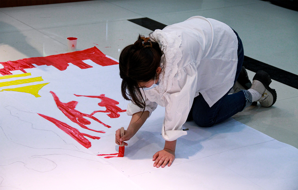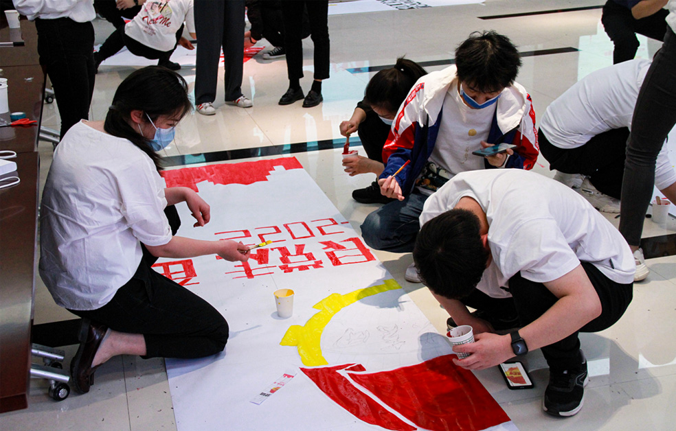 在主題團建活動環(huán)節(jié),團員青年們紛紛拿起畫筆、調(diào)制顏料、發(fā)揮想象,共同通過繪就《共繪百年光輝》巨畫,抒發(fā)對黨對團的熱愛,把對青春的熱情化作斑斕的色彩,為建團100周年獻禮。